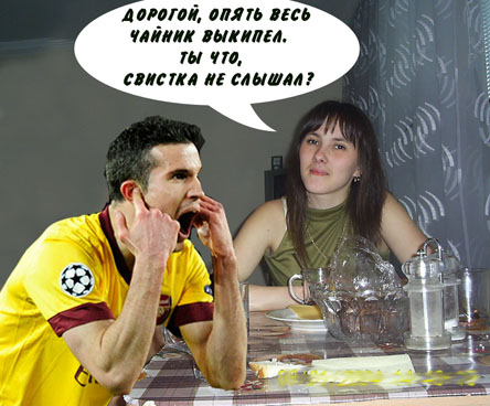 одной рукой Перси обращает наше внимание на количество ударов канониров по воротам «Барсы», а указующим перстом другой руки красноречиво указывает на полученную им red card, тем самым подчёркивая свою значимость для нынешних игровых построений Арсена.
