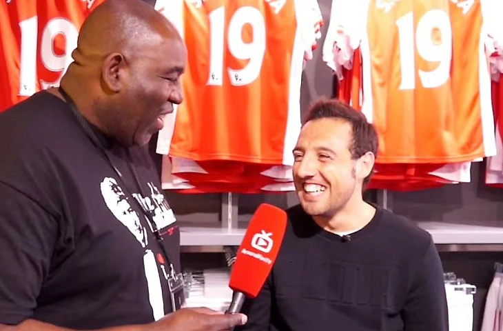 Быстро его приняли и партнёры по команде. "В вечер перед игрой у нас был ужин, на котором ребята сказали, что каждый из новичков должен исполнить какую-то песню. Я выбрал «Макарену». Мне, испанцу, было легче всего исполнить ее, к тому же я знал сам танец. По ходу номера мне понадобилось несколько пауз, потому что получился достаточно неловкий момент. Но в целом это отличная традиция. Юмор и смех помогают сплотить коллектив», - рассказывает он секрет быстрой адаптации в новой стране. После такого номера шансов не влюбиться в этого парня у партнёров не оставалось. "Санти вообще говорит по-английски?", - шутил Микел Артета в забавном интервью. "Он "украл" шоу", - говорила Mirror о его танце на новогодней вечеринке. А уж комментарий собственных матчей на канале "Арсенала" на YouYube стали классикой.