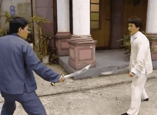 В документальном фильме "Джеки Чан. Мои трюки (1999)", Джеки решил подшутить над оператором во время показательного боя с применением искусственной крови