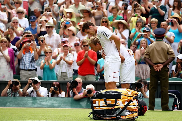 Еще одна уимблдонская традиция – после матчей на Центральном корте победитель и проигравший покидают корт вместе. Трудно сказать, с чем это связано, и еще труднее избавиться от неловкости при виде расстроенного теннисиста, мнущегося в ожидании своего радостного соперника, но нарушают этот порядок действительно редко.