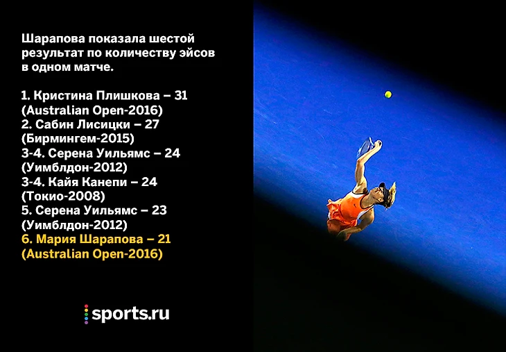 – Посмотрим, сможет ли Шарапова сделать 21 эйс в матче против Серены. Лично я сомневаюсь.