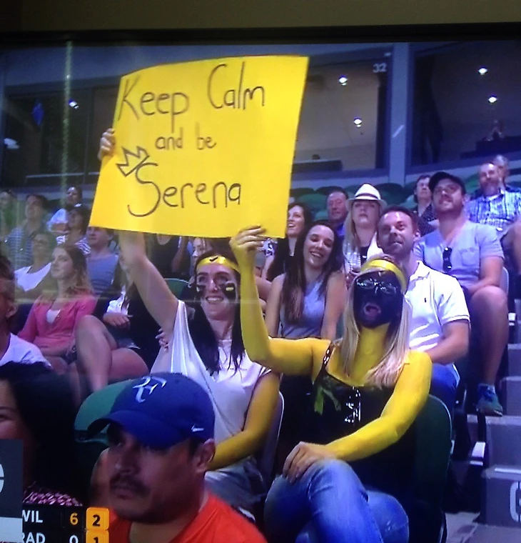 Возможно, это случай непереводимого австралийского юмора, потому что в этом году таким образом на Australian Open поддерживали уже Серену – одна из болельщиц пришла на матч Уильямс загримированной «под нее»: с черным лицом и желтыми руками, очевидно, имитирующими серенин наряд.