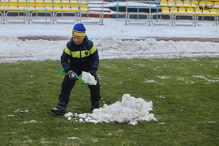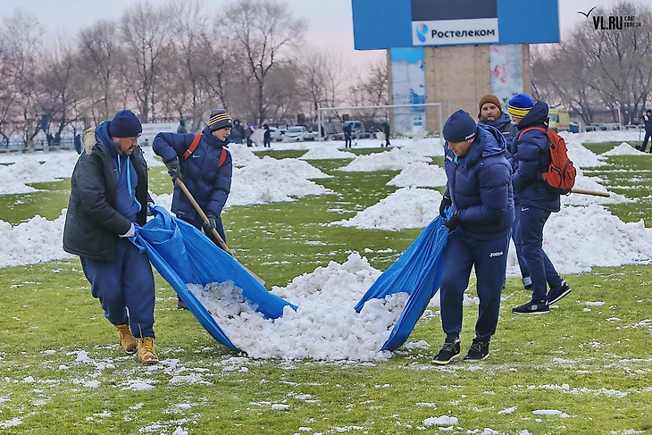 Снег, начавшийся во Владивостоке уже вечером пятницы, к утру субботы покрыл весь город. Матч «Луч-Энергия» – «Кубань»  перенесли на три часа, а в соцсетях приморского клуба появилась просьба: