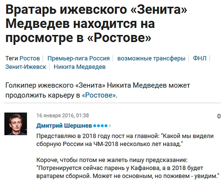 Пользователь Sports.ru год назад предсказал крутость вратаря «Ростова». И оказался прав