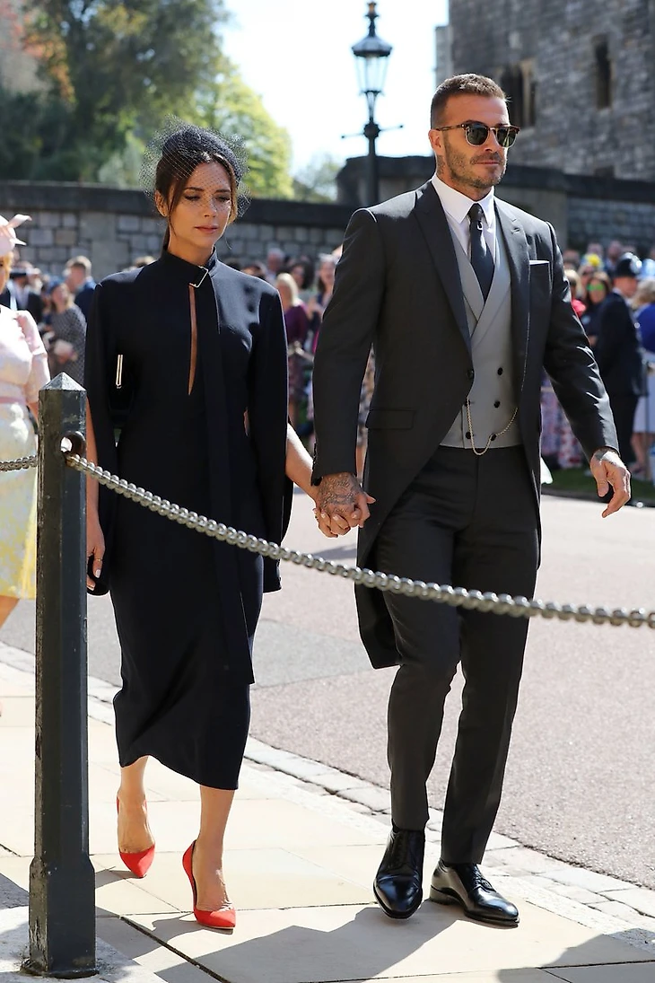На Королевскую свадьбу прехали Дэвид Бекхэм с Викторией. Дэвид как всегда был на высоте. Очки добавляли неформальности его фраку. Виктория была как всегда прекрасна в своем минималистичном наряде: