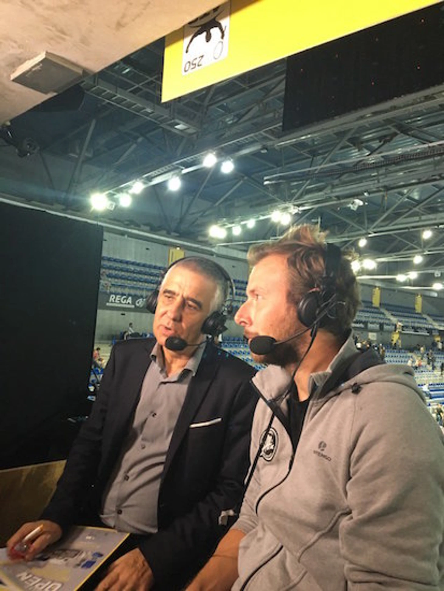 Энель (справа) в комментаторской будке Eurosport на турнире в Меце на прошлой неделе