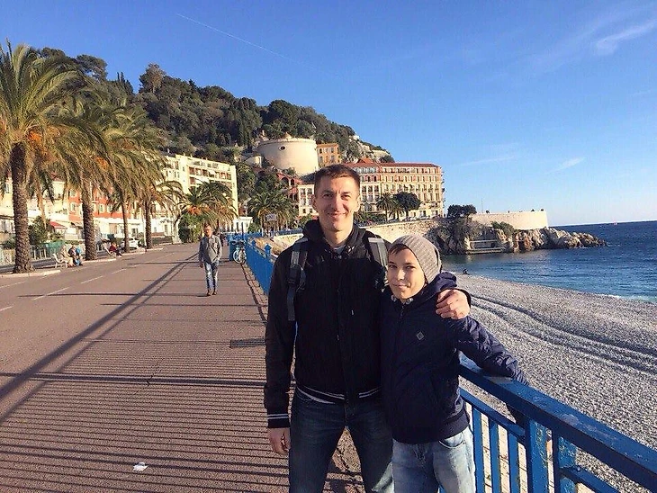 Сергей Хорошун с сыном Максимом на Английской набережной в Ницце.