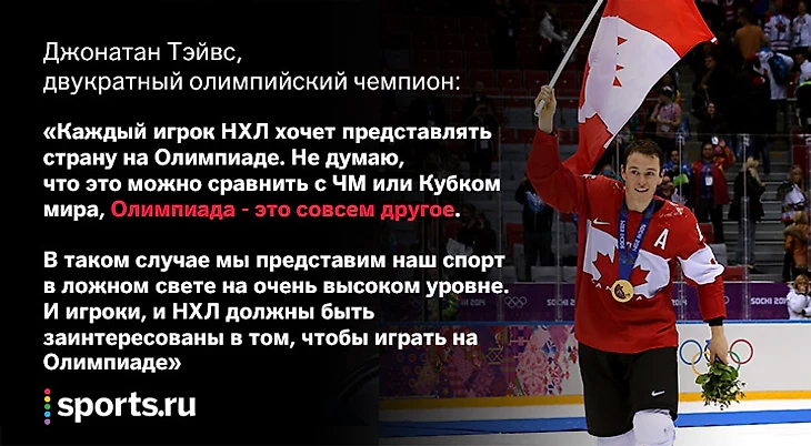 «МОК сделал ужасную ошибку, когда сказал, что не хочет платить за расходы на игроков НХЛ. Потому что были владельцы клубов, которые были не против поездки на Олимпиаду. Теперь, даже если МОК хочет платить, это уже неважно, потому что владельцы клубов подумали: «Подождите-ка, если МОК не ценит участие хоккеистов НХЛ в Играх, то почему мы должны останавливать наш сезон?» Это несправедливо по отношению к болельщикам. Это время, когда нет ни американского футбола, ни бейсбола.
