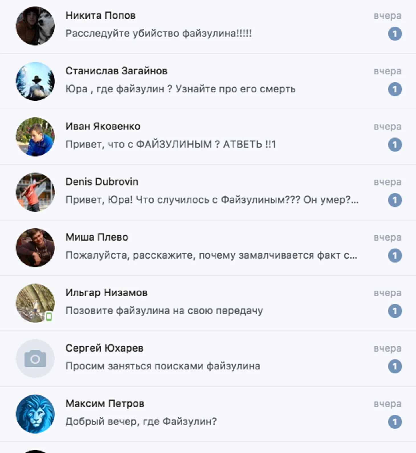 Вот как выглядят теперь папка личных сообщений Юрия Дудя в ВК.