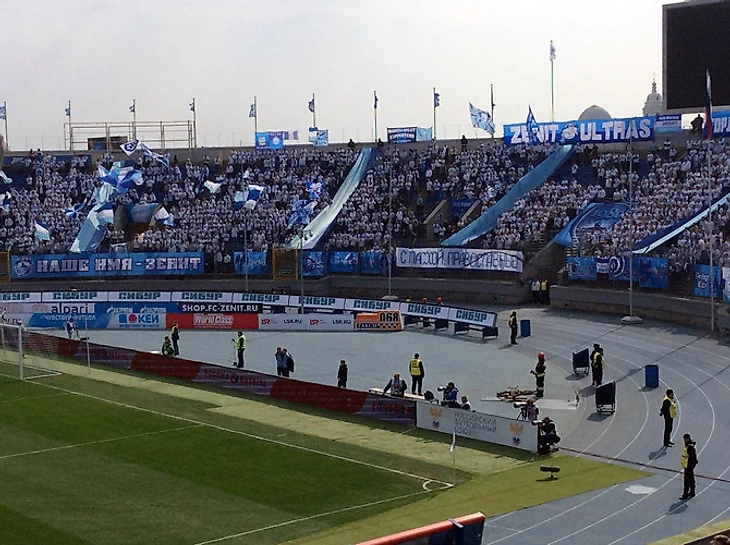 "Изображение Иисуса" на матчах Зенита уже много лет и этот флаг - это Спас Нерукотворный, знамя под которым бились Александр Невский, Дмитрий Донской. Это стяг с которым Иван Грозный брал Казань. Это древнейший государственный символ русского государства.