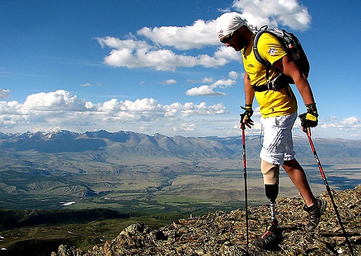 Потом меня спросили: хочешь в горы? Я сказал, что хочу. Приехал на первое восхождение. Поднимался на перевал и сильно стер ногу. Сломал протез. Очень расстроился, что не смог.