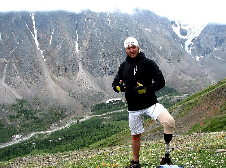 Еще у меня сплав на Алтае был в этом году. Я вырос на берегу Оби, с детства плавал, мне захотелось сплавиться. Взяли лодку и поехали на поезде: сперва до Бийска доехали, оттуда на автобусе до Телецкого озера, сплавились с приятелем от поселка Артыбаш километров 100 до места, которое называется Иконостас. Там скала, на которой выбит профиль Ленина. Было довольно интересно. Три ночевки по пути. Промокшие, весь протез в воде. Протез, опять же, не предназначен для такого, но меня это не останавливало, ведь я русский человек и должен прославлять свою страну, а не жаловаться на обстоятельства, на кризис и так далее.