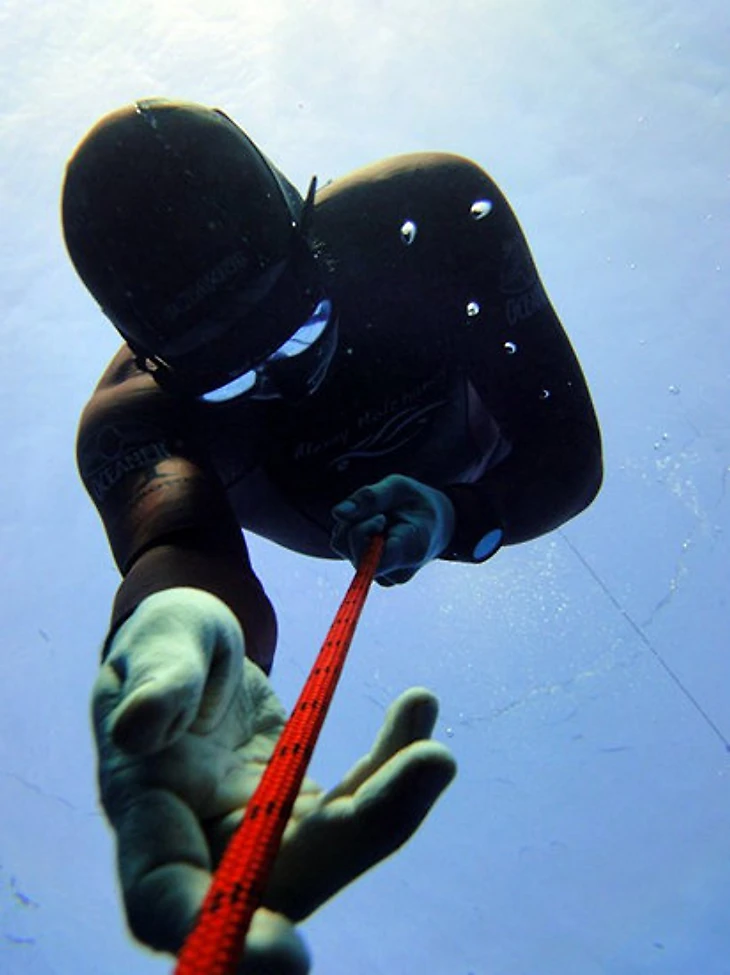 Могут быть проблемы из-за течения. Был случай с еще одним фридайвером, когда из-за течения растянулся нырок. У него возникло серьезное декомпрессионное заболевание.