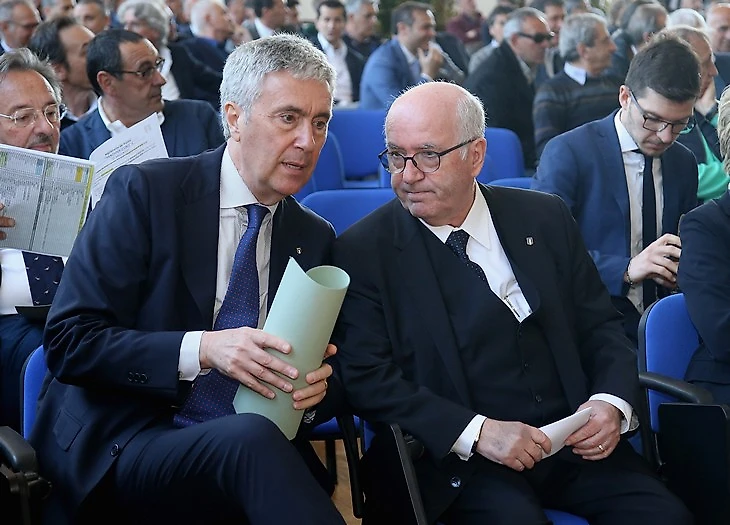 Габриэле Гравина (президент Lega Pro), Козимо Сибилья (президент Любительской лиги и вице-президент FIGC) и Дамьяно Томмази (президент Ассоциации итальянских футболистов – AiC).