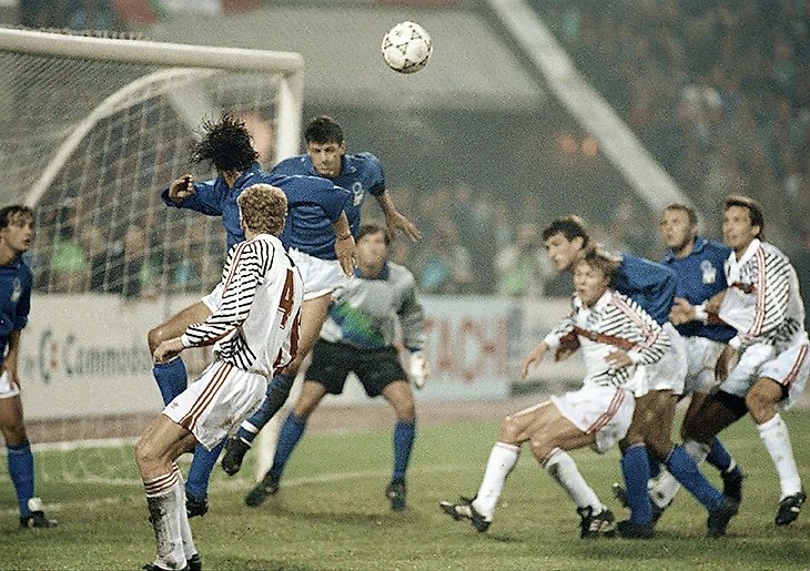 3 июля 1990 года. «Сан-Паоло». Вопреки опасениям, весь стадион поддерживает национальную сборную. Фортуна вроде бы благоволит хозяевам – на 17 минуте Тото Скиллачи открывает счет. Все идет по плану, ведь в обороне у итальянцев настоящие монстры – Мальдини, Барези, Ферри и Бергоми. Идеально подобранные детали совершенного механизма – за весь турнир эта защита мечты не допустила ни одной осечки.