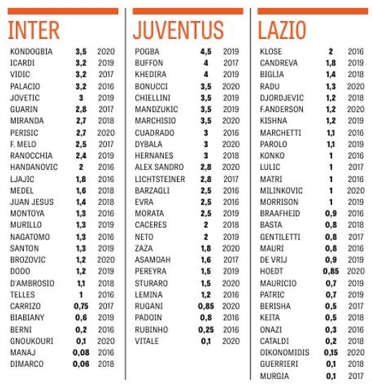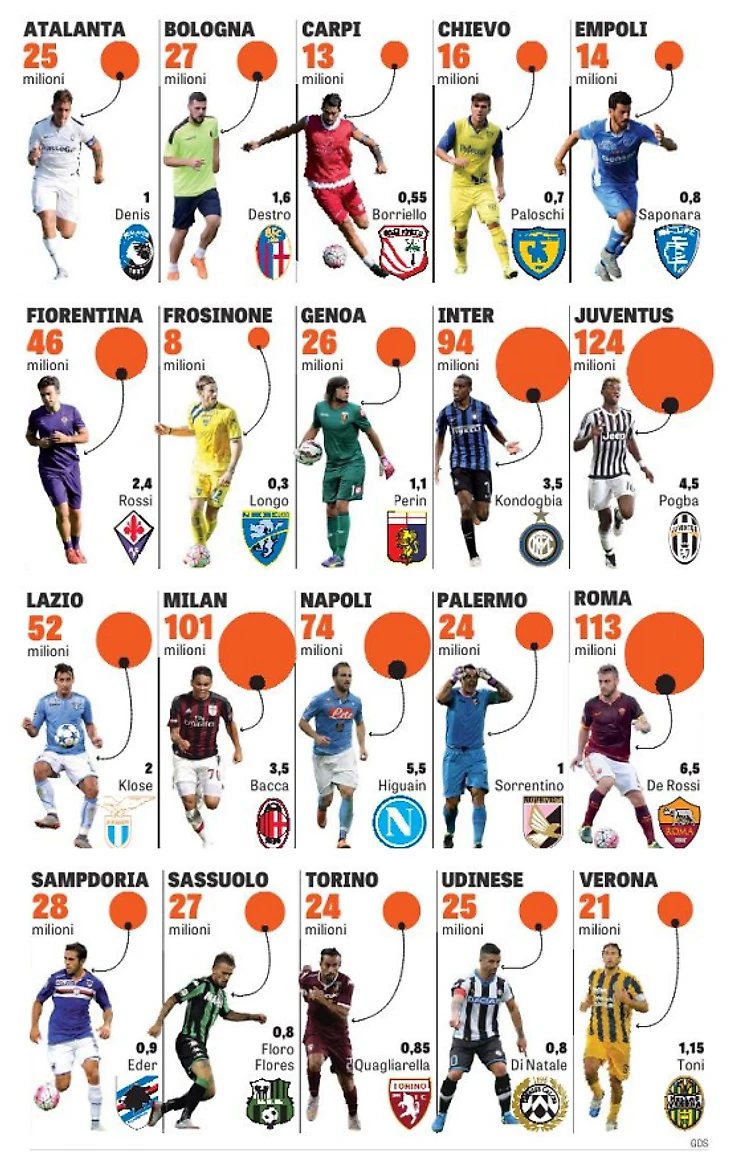 Диета по-итальянски. Кто и сколько получает в серии А (сезон 2014/15)