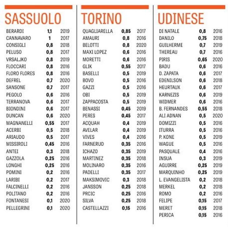 Все данные Gazzetta dello Sport.