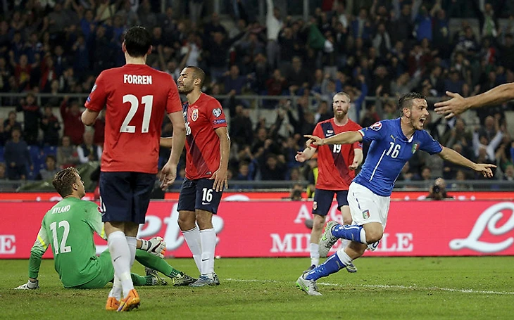 Пропустив случайный мяч, итальянцы создали множество моментов у ворот Эрьяна Нюланда. Их не смутил даже ошибочно зафиксированный офсайд после паса Кандревы на Флоренци. Повтор показал, что гол забит абсолютно правильно. Жаль. Было бы красиво – представители «Ромы» и «Лацио» приносят победу на «Стадио Олимпико». В конце концов выдающаяся игра Алессандро Флоренци была вознаграждена – римлянин не только сравнял счет, но и сделал результативную передачу на Грациано Пелле. Но итог матча Бельгия – Израиль не позволил сборной Италии получить статус сеяной команды при жеребьевке финальной части чемпионата Европы. Хотя, глядя на кадры ликования в раздевалке, может показаться обратное.