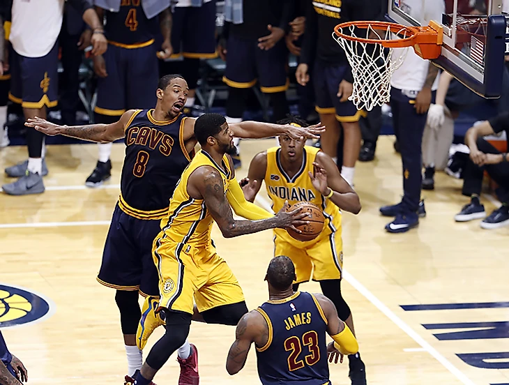 Долго рассказывать нет смысла – многие всё видели сами. Разница в уровне команд составляла примерно +20 в пользу Кливленда к концу третьей четверти. Когда же Индиана на домашней площадке собралась с силами и забила всё в первой половине (более 60% с игры и 50% из-за дуги), заработав себе разницу в 25 очков к большому перерыву, ЛеБрон усадил на лавку Кайри и Лава, засучил рукава и отыграл всё отставание с Фраем, Корвером и Джей Аром. Скажу страшное: мог и больше, если бы начал сам защищаться против Пола Джорджа. Просто этого не понадобилось – тот парень предпочитает отстаивать своё лидерство и звёздный статус не на площадке против лучших, а в кабинетах менеджмента команды и залах для интервью с журналистами. Объяснить иначе 5 из 21 с игры в следующем (и решающем!) матче серии, ещё и перед своими трибунами, я не могу.
