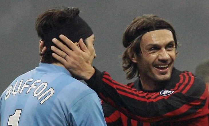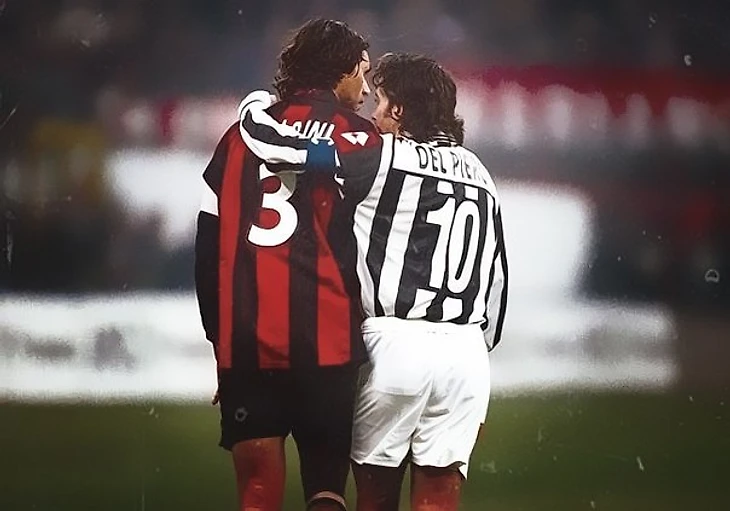 Просто посмотрите на эти фотки. Признайтесь, вам этого не хватает... Каждый раз я хотел увидеть это снова. Дель Пьеро и Мальдини, Буффон и Мальдини выводят Ювентус и Милан на матч. Как же это было круто.