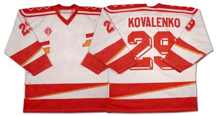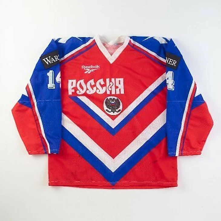 Этот концепт, кстати, пережил всю переходную эпоху – в нём хоккеисты успели поиграть и с надписью СССР на груди, и с надписью РОССИЯ, а на Олимпиаде в Альбервиле – и вообще без всякой надписи.
