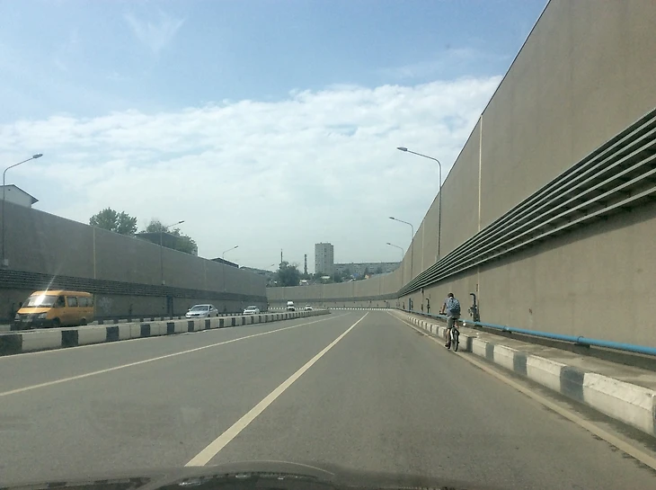 Хотя на Первой продольной магистрали асфальта еще нет. То есть его сняли, а новый не положили. Так мы немного угробили свои стойки.