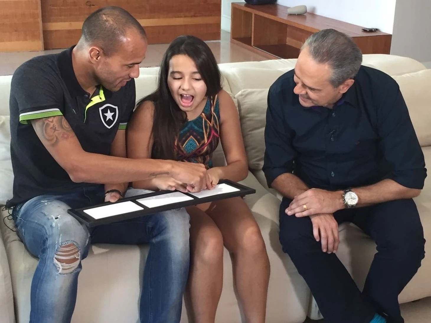 Слепой дочке нападающего "Ботафогу" Рожера Родригеса подарили выпуклую дощечку с раскадровкой гола, и она лучше поняла, как забивал ее отец