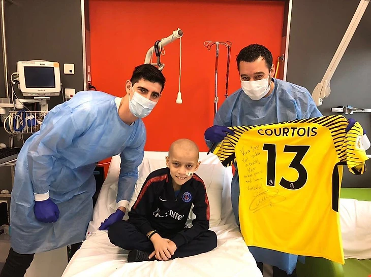 Вратарь «Челси» Тибо Куртуа зашел в гости к 8-летнему Йорго, который борется с лейкемией. Футболист поддержал ребенка и подарил ему игровую футболку с автографом.