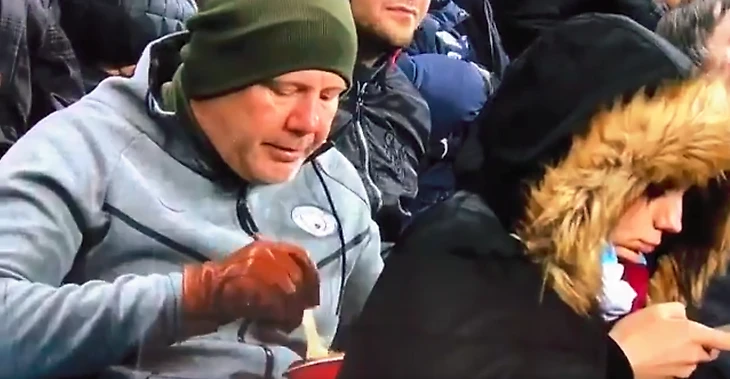 31 января «Манчестер Сити» принимал «Вест Бромвич» на «Этихаде» (3:0). Болельщики «горожан» так привыкли к победам, что спокойно ужинают во время матча.