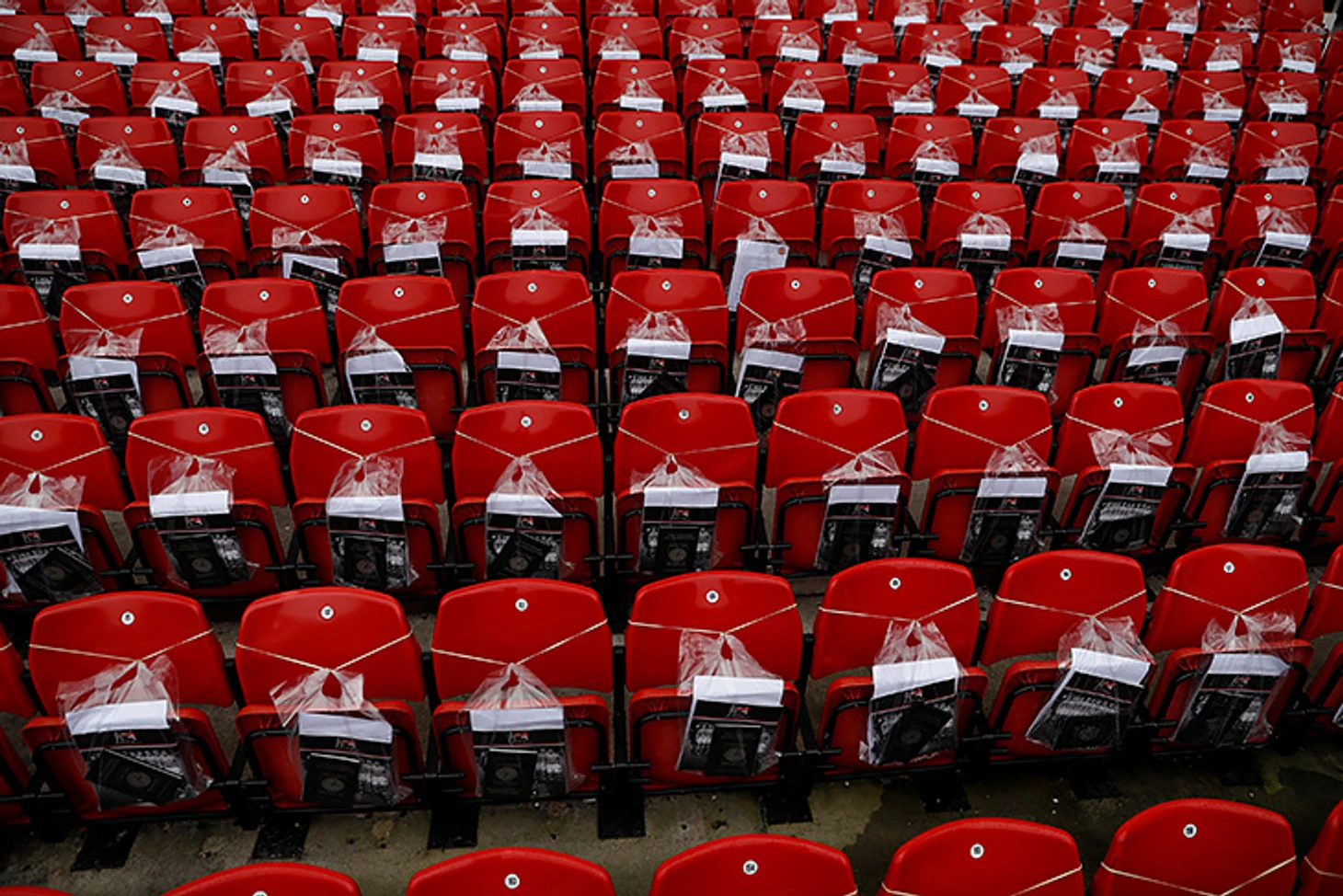 На креслах стадиона были разложены специальные пакеты. В них лежали специальная книга, посвященная игрокам, плакат и значок: