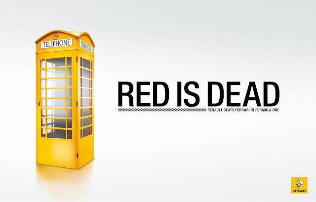 Компания "Рено", являющаяся спонсором и поставщиком моторов команды "Формулы-1" "Ред Булл", отпраздновала победу австрийской конюшни в Кубке конструкторов, выпустив серию постеров с девизом "Красный мертв. "Рено" победило "Феррари" в "Формуле-1".