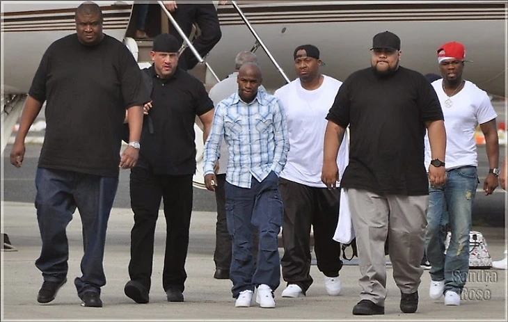Во время турне по Великобритании знаменитый боксер Флойд Мэйвезер передвигался по улицам в сопровождении нескольких охранников.