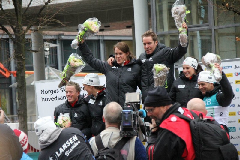 Спонсор норвежцев компания DNB этой осенью устроила соревнования в Осло по стрельбе из лазерных винтовок, штрафом был бег. Дуэт Эмиль Хегле Свенсен и Сюннёве Судемдаль одержал победу. И это со стрельбой-то Сюннёве :)
