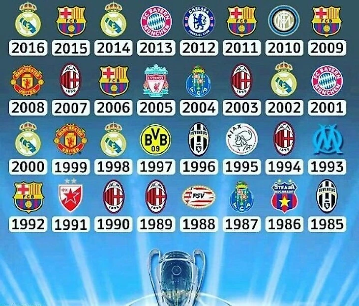 Немного истории: Победители Лиги Чемпионов с 1993 по 2016 год