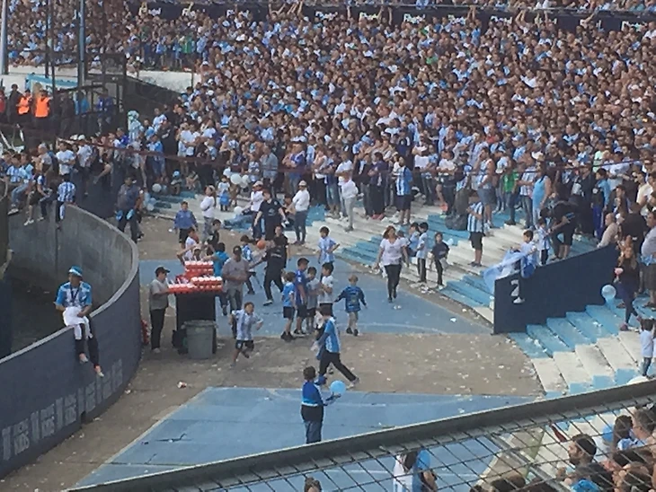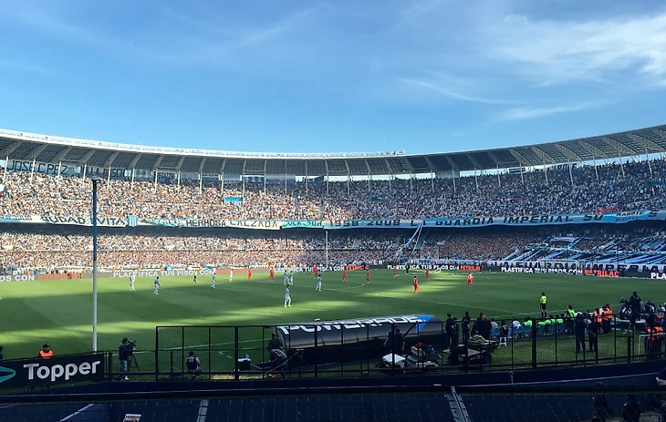 Матч не был топовым, и мы спокойно взяли в кассах билеты на platea (сидячий сектор) по центру, отдав по 70 песо (19 USD). Арена была заполнена всего на две трети, вокруг нас было много семей, но атмосфера была замечательная. Пел весь стадион, а не только сектора за воротами.