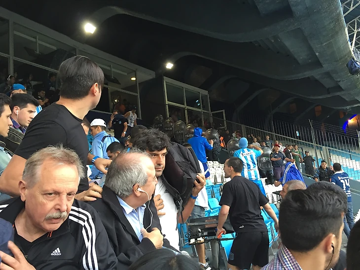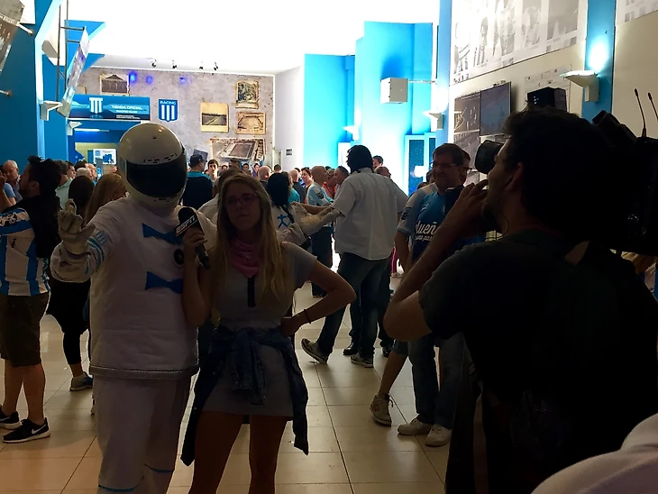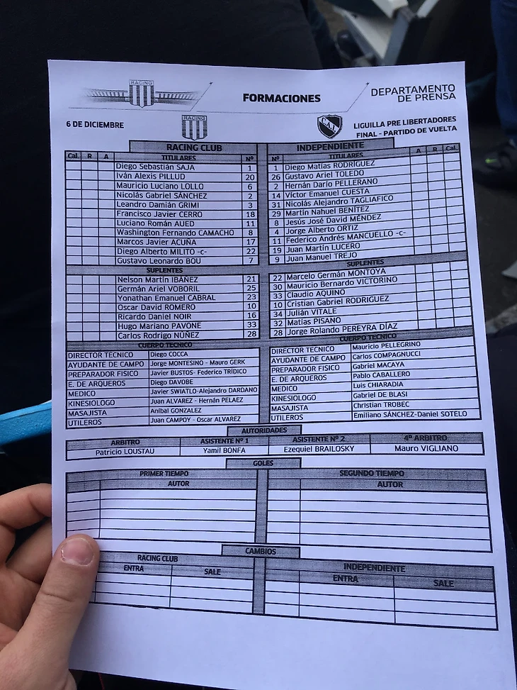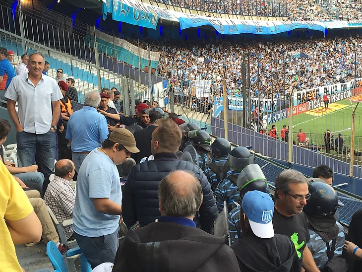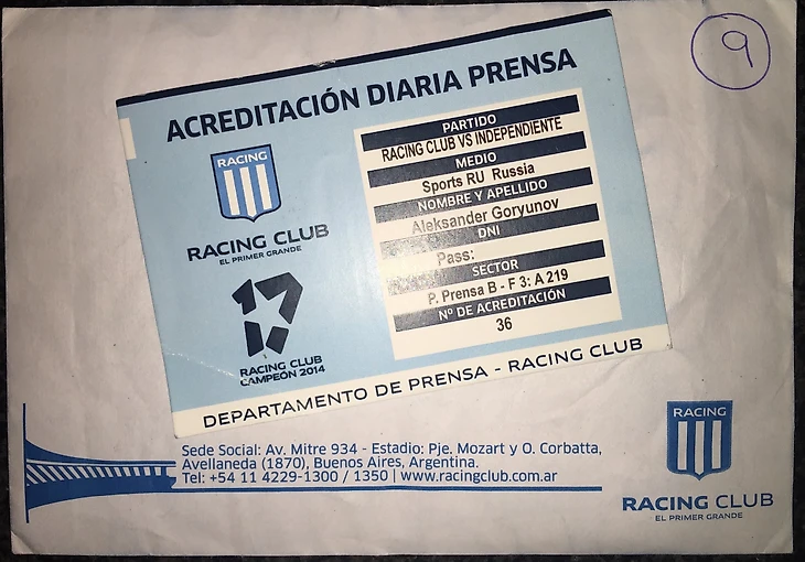 Ребята в клубных майках нашли нужный конверт и отдали нам наши пропуски, даже не спросив документов. Да, это вам не «Эмирейтс»! С другой стороны было вполне понятно. Пока мы расписывались я бегло просмотрел списки. Мы были единственными иностранцами. Повязали браслеты с надписью «Racing Club – Prensa» и на трибуну.