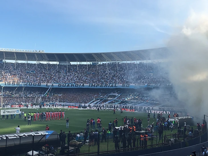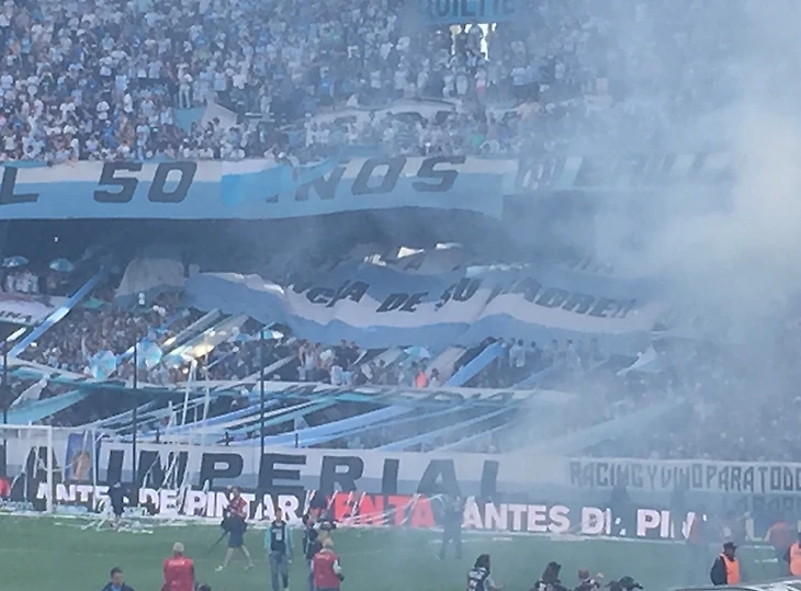 Незадолго до стартового свистка главная barra brava «Расинга» La Guardia Impеrial (отпраздновавшая в 2008-м году свое пятидесятилетие) развернула баннер в честь себя любимой, закрывший треть нижнего яруса.