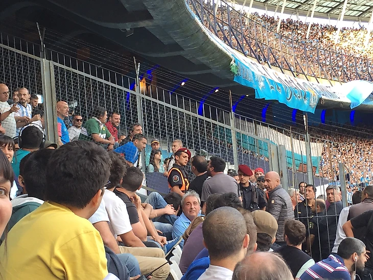 За полтора часа до игры стадион еще на был забит до отказа, но на трибунах было непривычно много народа для нашего, привыкшего к английским стадионам, взгляда. Эта масса уже пела и шумела.
