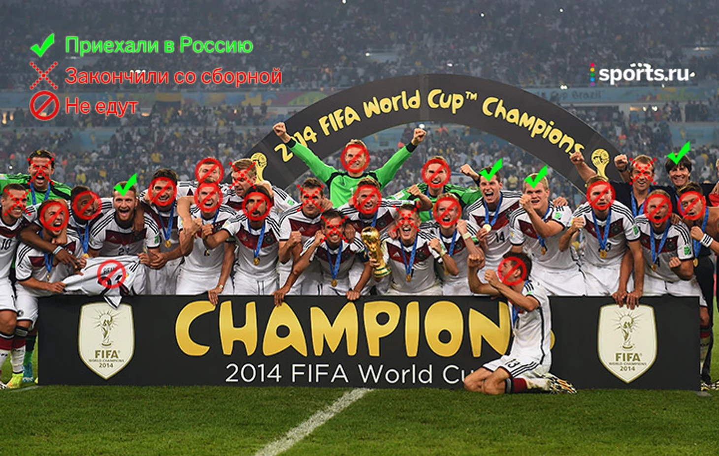 У нас было время привыкнуть (Йоахим Лев объявил состав давно), но нам может быть все равно грустно: на Кубке конфедераций в составе сборной Германии нет получивших отдых Месут Озила, Жерома Боатенга, Матса Хуммельса, Тони Крооса, Сами Хедиры, Томаса Мюллера, Марио Гомеса, а также травмированных Мануэля Нойера, Марко Ройса, Марио Гетце, Бенедикта Хеведеса и Юлиана Вайгля.