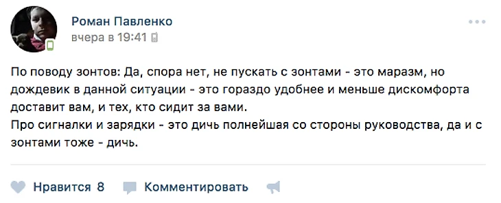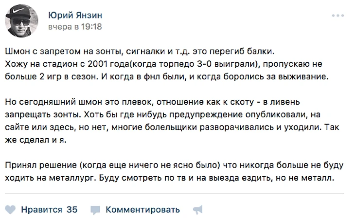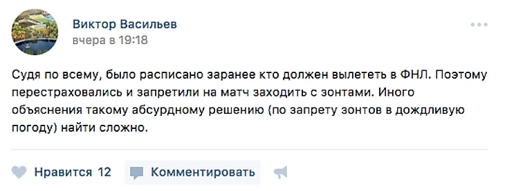 В пабликах ВК, посвященных «Крыльям», зонты были одной из главных тем вечера – вместе с вылетом команды из премьер-лиги.