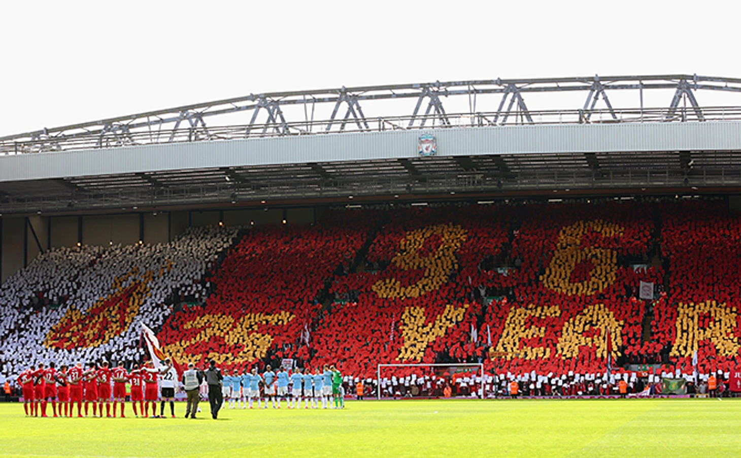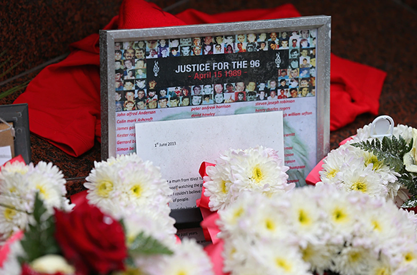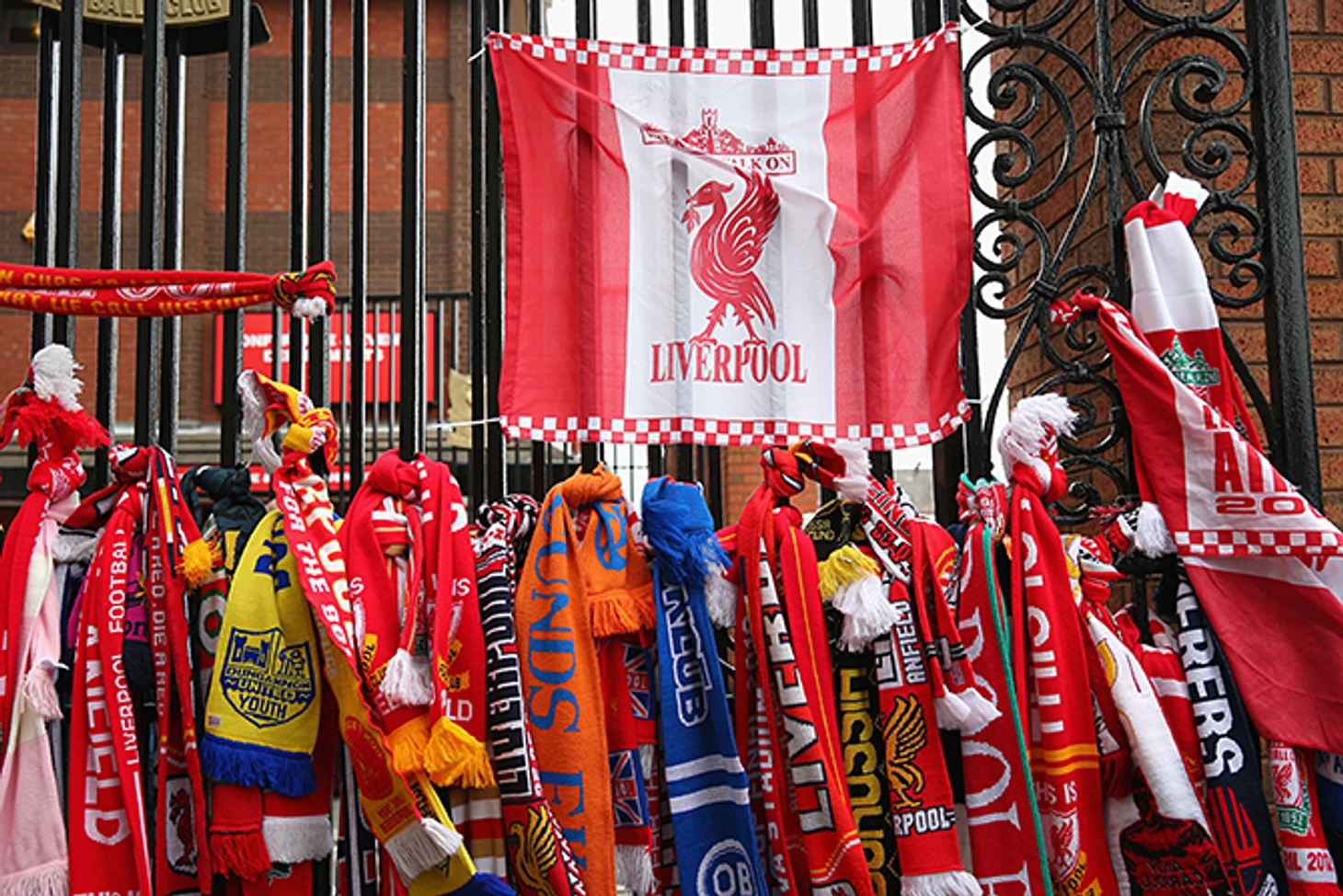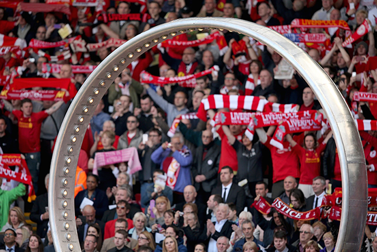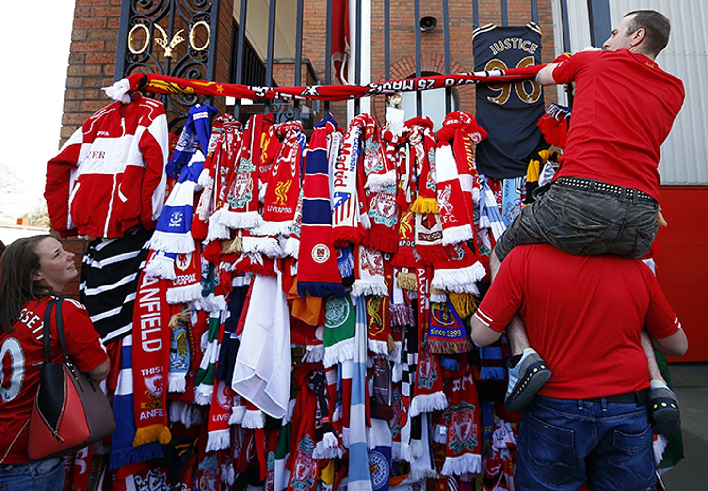 В центре поля на «Энфилде» выложено «96» из шарфов клубов.