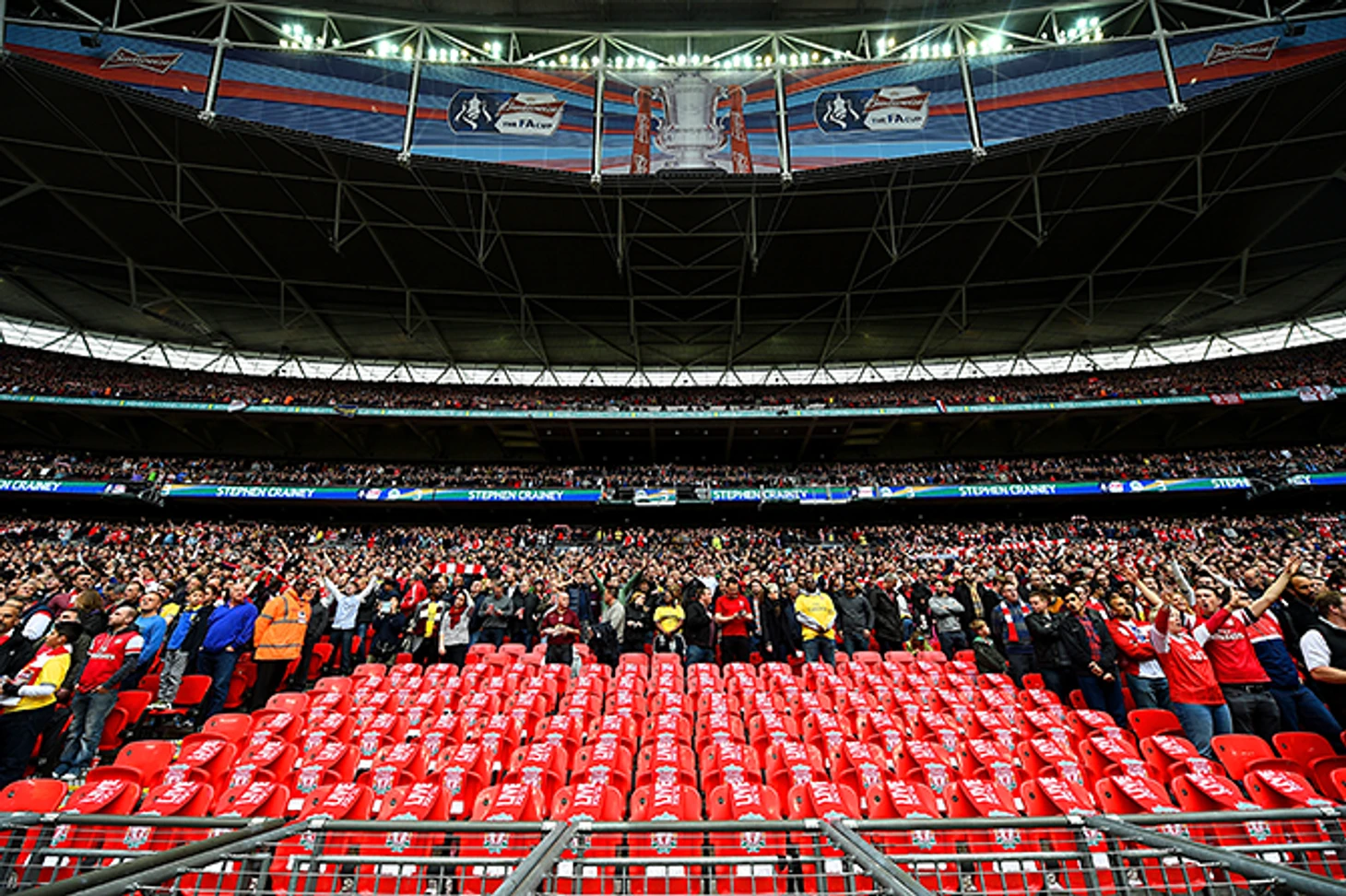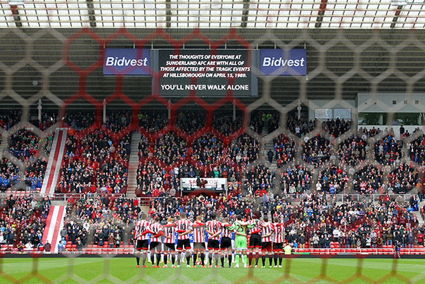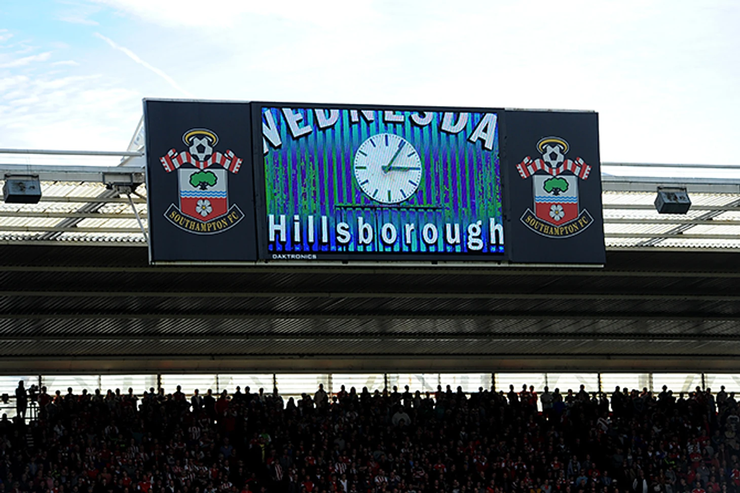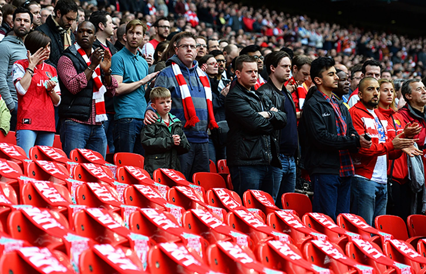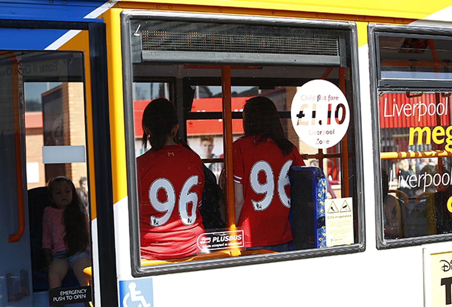 В центре поля на «Энфилде» выложено «96» из шарфов клубов.