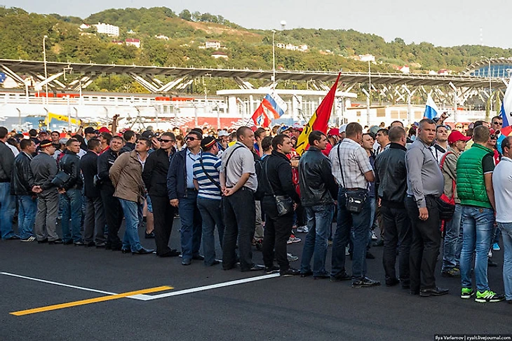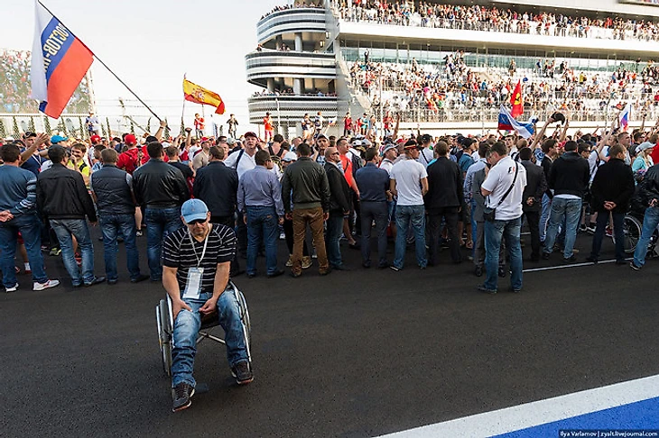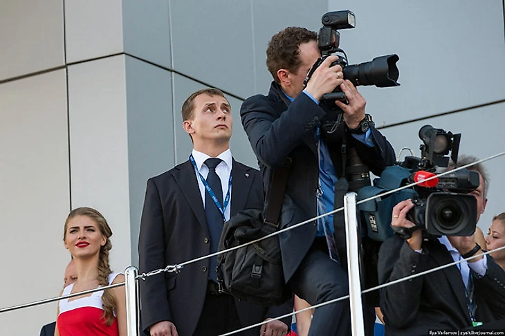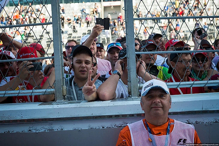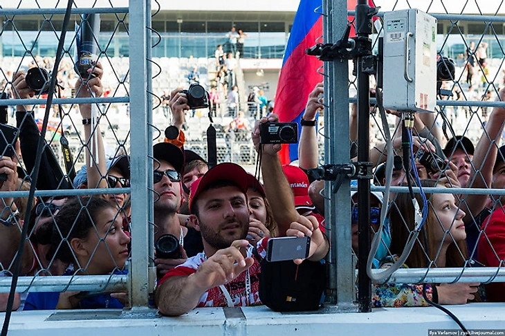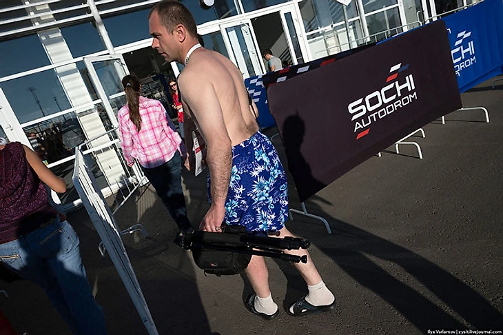 Илья Варламов фотографирует политиков, селебрити и их охранников на этапе «Формулы-1» в Сочи.