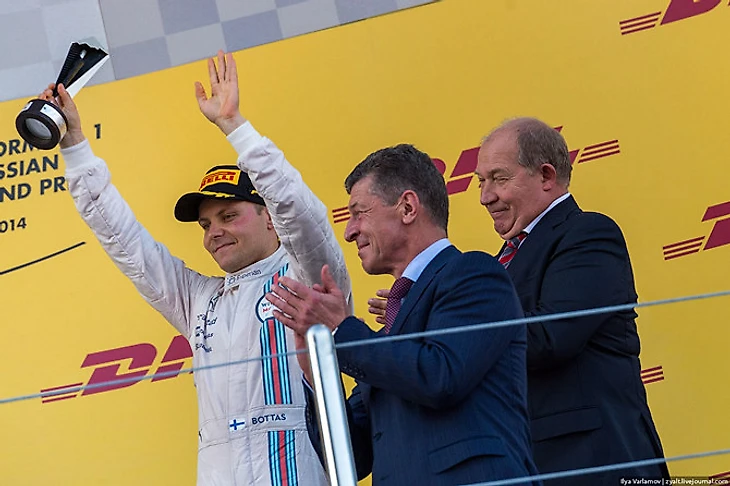 11. Валттери Боттас, третье место. Кто его награждает? Его награждает вице-премьер Дмитрий Козак и заместитель министра внутренних дел Российской Федерации по безопасности на транспорте Виктор Кирьянов