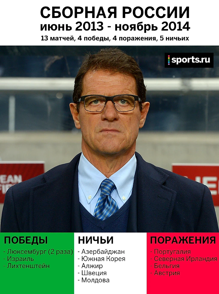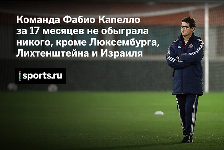 Команда Фабио Капелло за 17 месяцев не обыграла никого, кроме Люксембурга, Лихтенштейна и Израиля.