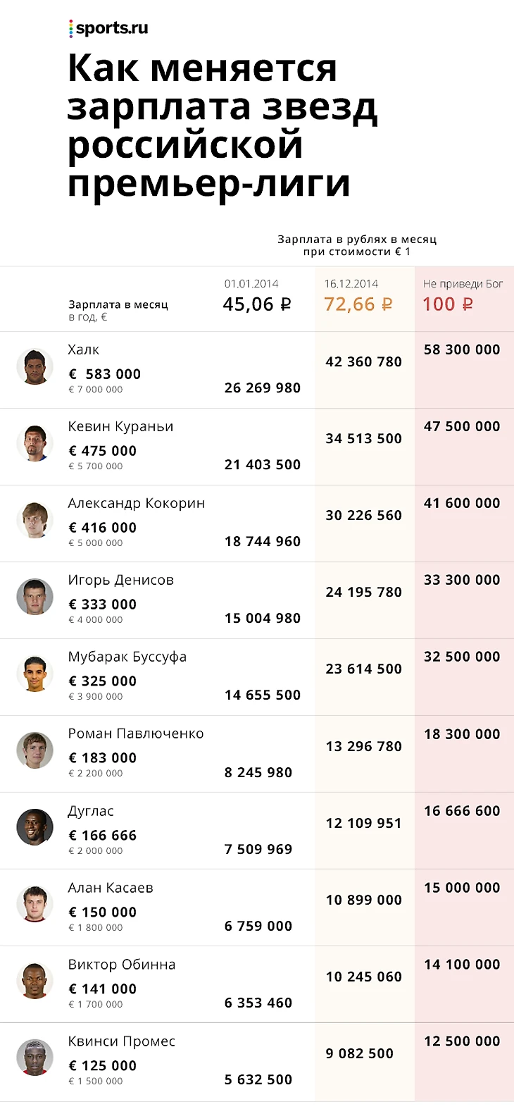 Sports.ru следит за тем, как стремительное падение курса рубля увеличивает оклады некоторых игроков РФПЛ.