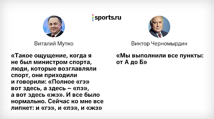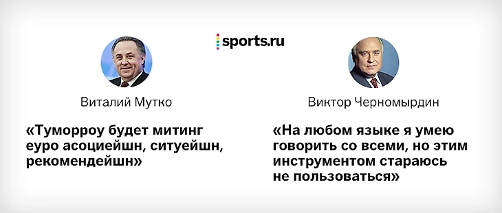 Министр спорта Виталий Мутко продолжает говорить много и сочно. Sports.ru решил сравнить его с другим выдающимся русским оратором – Виктором Черномырдиным (премьер-министром РФ при Борисе Ельцине и послом России на Украине в 2001-2009 гг).