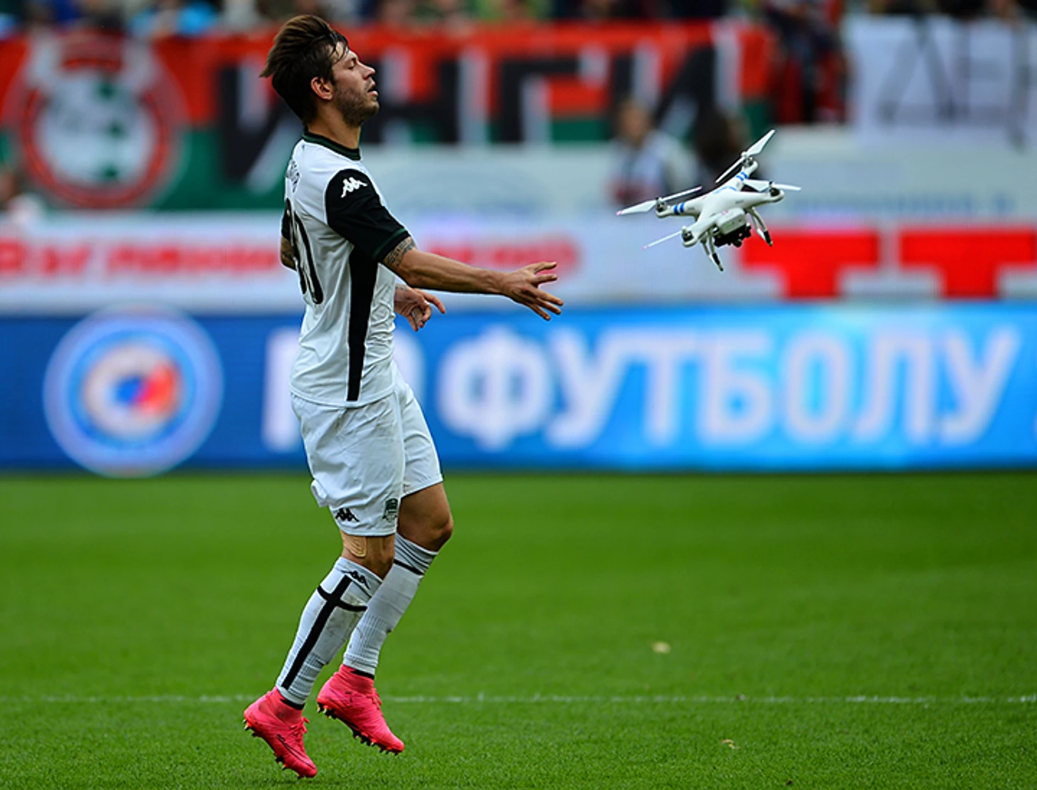 Долгое время Смолов пытался делать игру «Краснодара» более вдохновенной безо всяких нервов, но ближе к концу сдерживаться стало сложно. Когда на поле приземлился белый квадрокоптер стоимостью около 100 тысяч рублей, Федор схватил его правой рукой и мощно метнул на бровку – от соприкосновения с землей аппарат разлетелся на две части. Василий Уткин тут же отметил, что «НТВ-Плюс» отношения к квадрокоптеру не имеет.