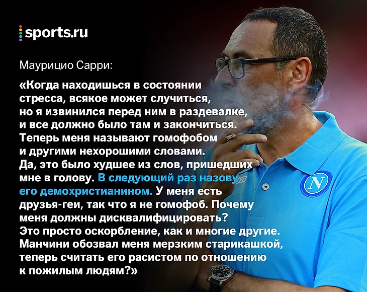Победу одержал Манчини: сегодня стало известно, что Сарри дисквалифицирован и оштрафован