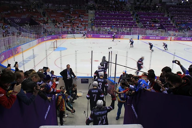 – Я очень довольна, что оказалась на этой игре. Пока не до конца все прочувствовала, но здесь точно гораздо громче, чем на тех матчах НХЛ, которые я видела вживую, – рассказывает в перерыве Рони, которая работает здесь в американском доме. – Вообще у меня от Сочи только положительные эмоции: ты посмотри, какая погода, а там, где я живу, сейчас все снегом завалено.